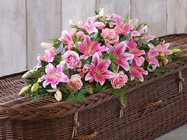 A classic spray of pink roses and fragrant oriental lilies contrasted beautifully with foliage.